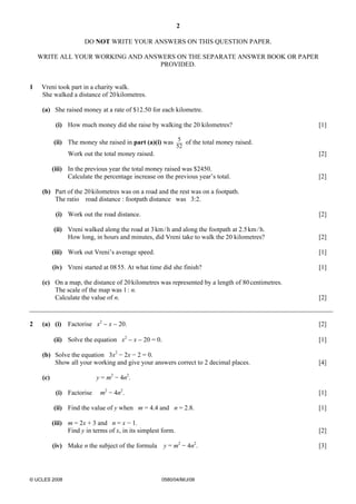 This document is a 13-page exam for the International General Certificate of Secondary Education in Mathematics. It contains 10 multi-part questions testing a variety of math skills including algebra, geometry, probability, statistics, and graph sketching. The exam instructions specify the allowed materials, working methods, and that answers should be written on separate paper rather than on the question sheet itself.