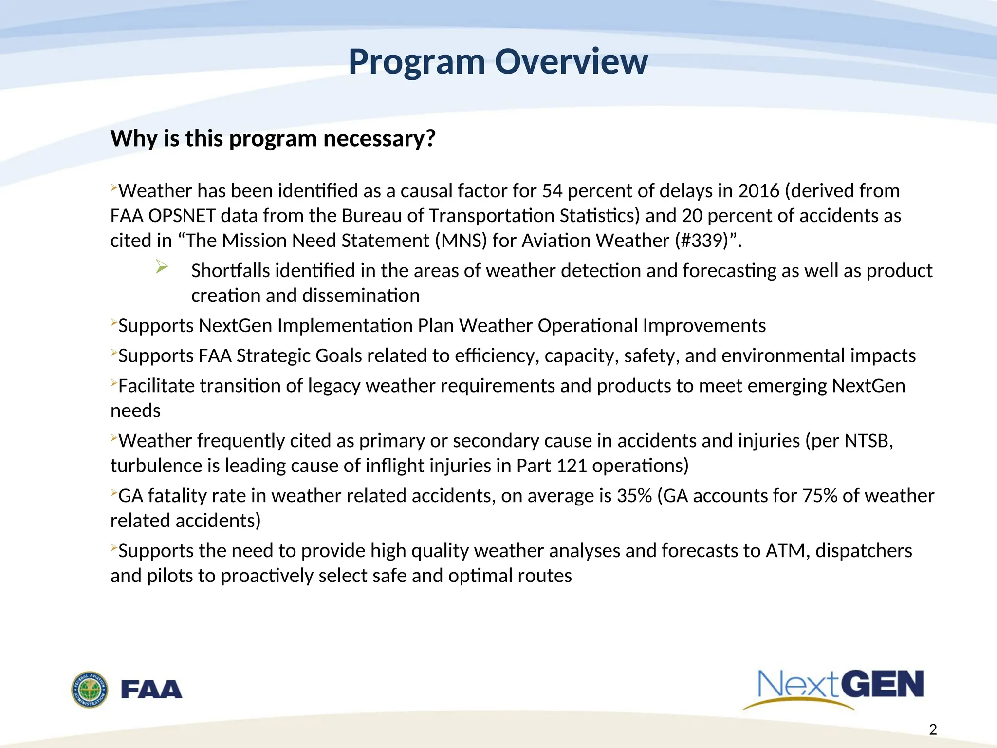 Facilitate transition of legacy weather requirements and products to meet emerging NextGen