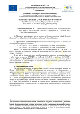 7. Срок за изпълнение на поръчката: доставките на закуските и на обедите ще