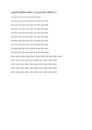 The document contains a list of 150 numbers ranging from 1.1 to 150.4 in increments of 0.1, with some numbers containing multiple values separated by commas.