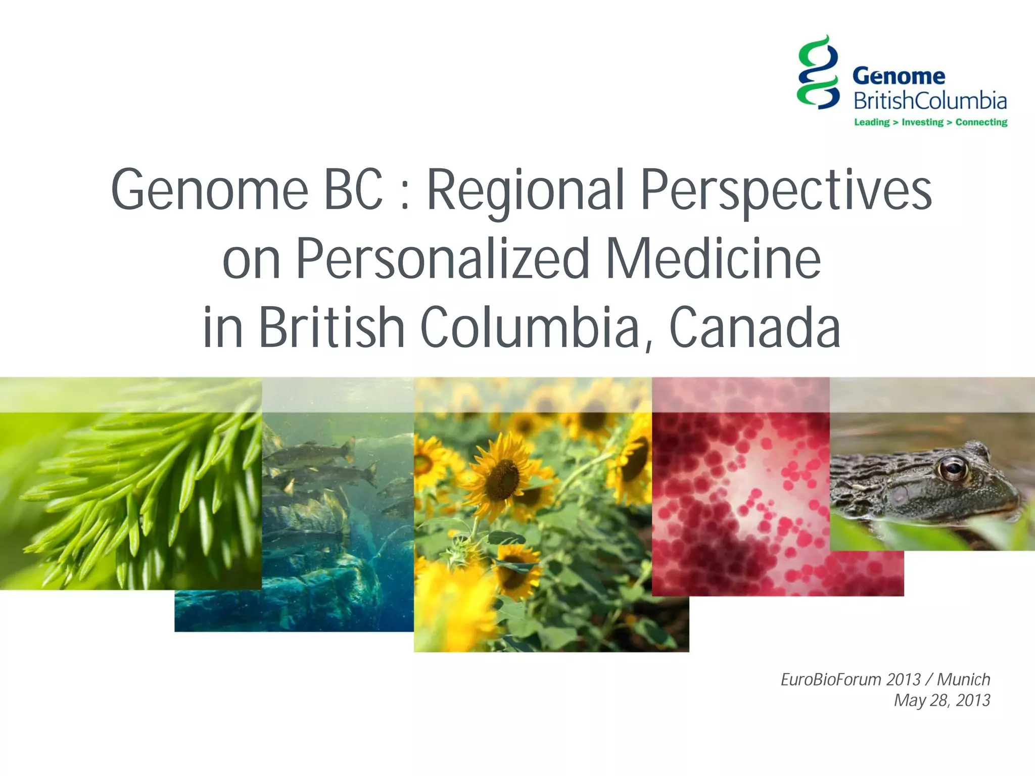 Genome British Columbia, established in 2000, has invested over $625 million in genomics research focusing on key economic sectors in the region, such as human health and agriculture. The organization employs a personalized medicine approach to healthcare, aiming to transition genomic research into practical applications within three years. Current projects involve collaborations to enhance treatment strategies for conditions like cancer and heart disease through genomics, with an emphasis on developing effective diagnostic and therapeutic tools.