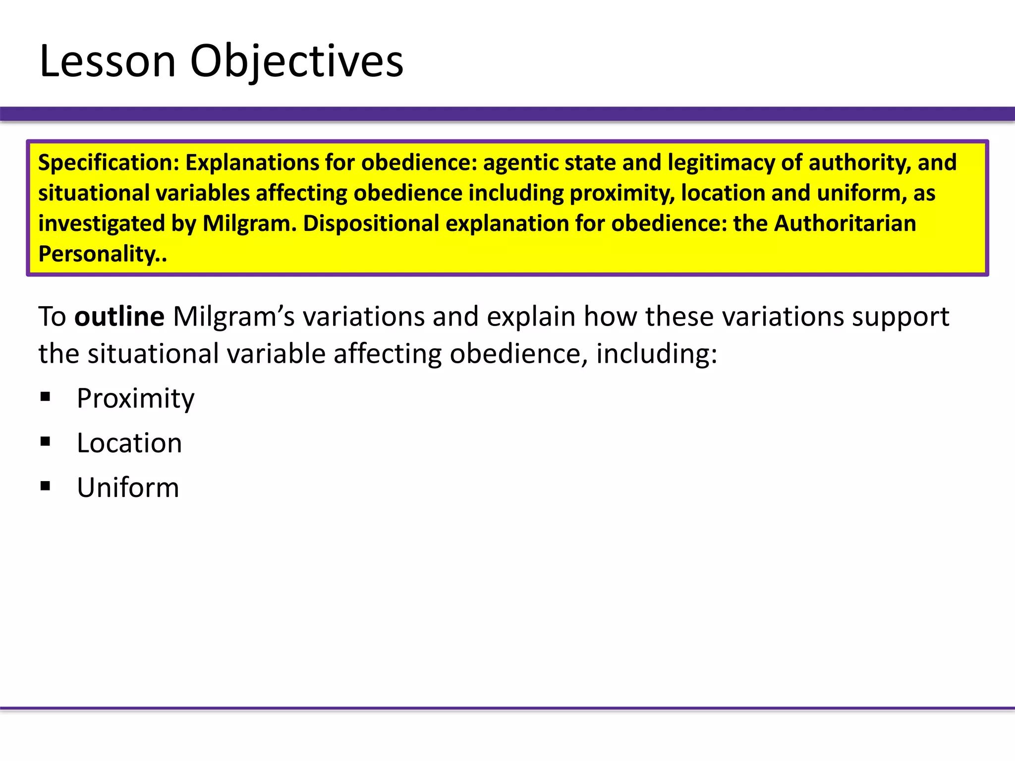 The document discusses Milgram's variations on his obedience experiments and explanations for obedience. It outlines six variations Milgram conducted that altered proximity, location, or uniform from the original experiment. These include having someone else administer shocks, giving instructions over the phone, changing the location, and making participants work in groups. The variations showed obedience levels from 10% to 92.5%, supporting situational explanations. Explanations for obedience discussed are agentic state, legitimacy of authority, proximity, location, and uniform.