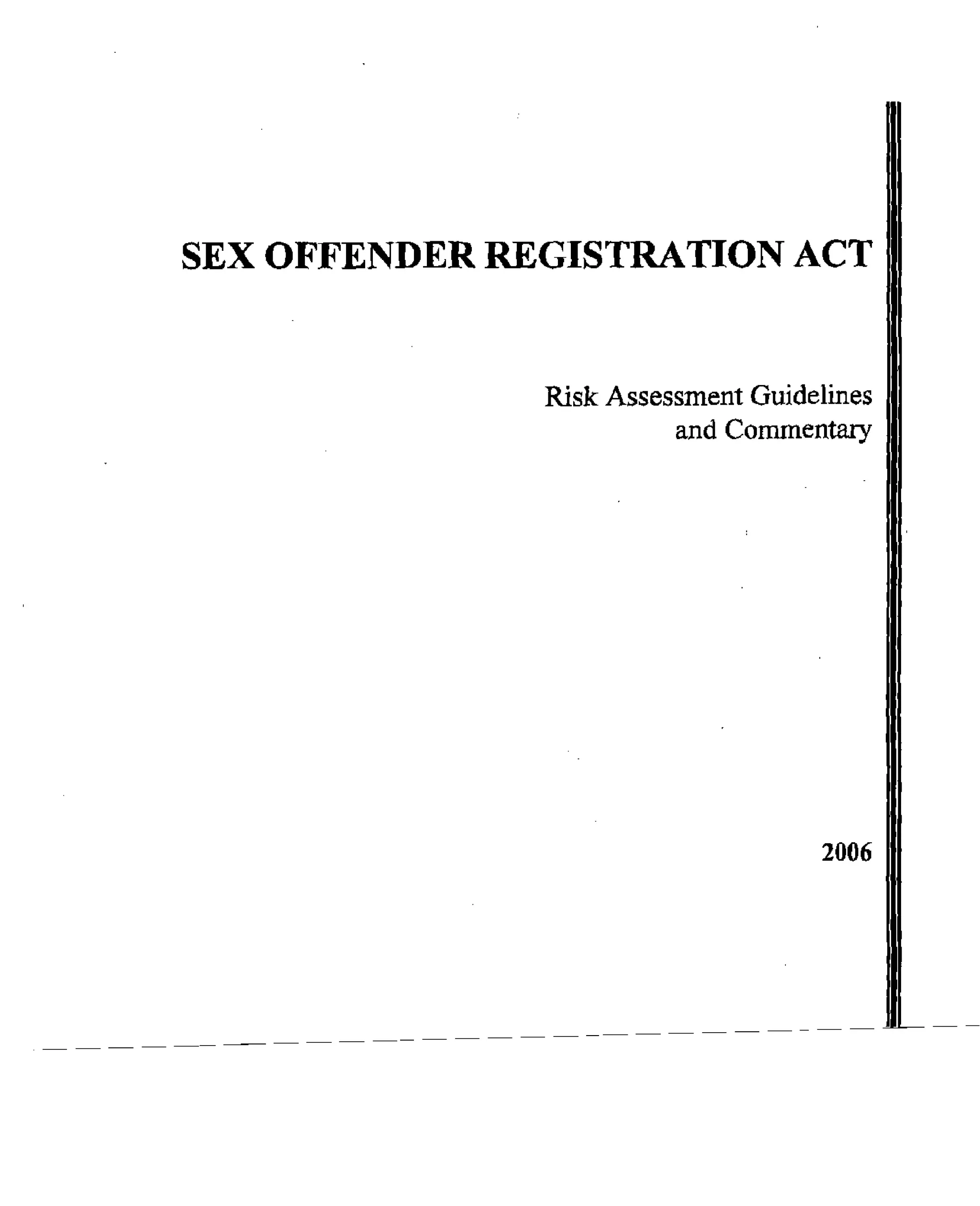 The document provides guidelines and commentary for assessing the risk level of sex offenders under New York's Sex Offender Registration Act. It outlines a risk assessment instrument that assigns points for various risk factors to determine a presumptive risk level of 1, 2, or 3. There are also overrides that result in a presumptive level 3. The guidelines aim to predict recidivism risk while considering the potential harm of reoffense. Risk levels guide public notification procedures and registration requirements.