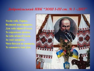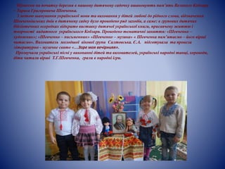 творчості видатного українського Кобзаря. Проведено тематичні заняття: «Шевченко –