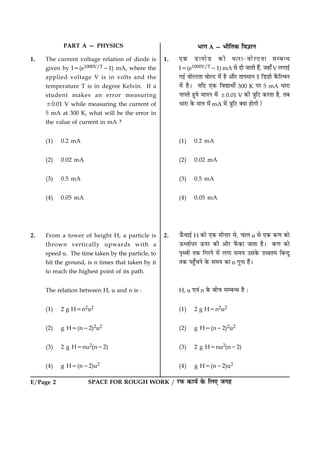 This document contains instructions for a test booklet and answer sheet. It provides details like the number of pages in the test booklet, duration of the exam, number of questions, distribution of questions across subjects, marking scheme, and important instructions for candidates regarding filling the answer sheet and guidelines during the exam. The document also mentions the test booklet code.