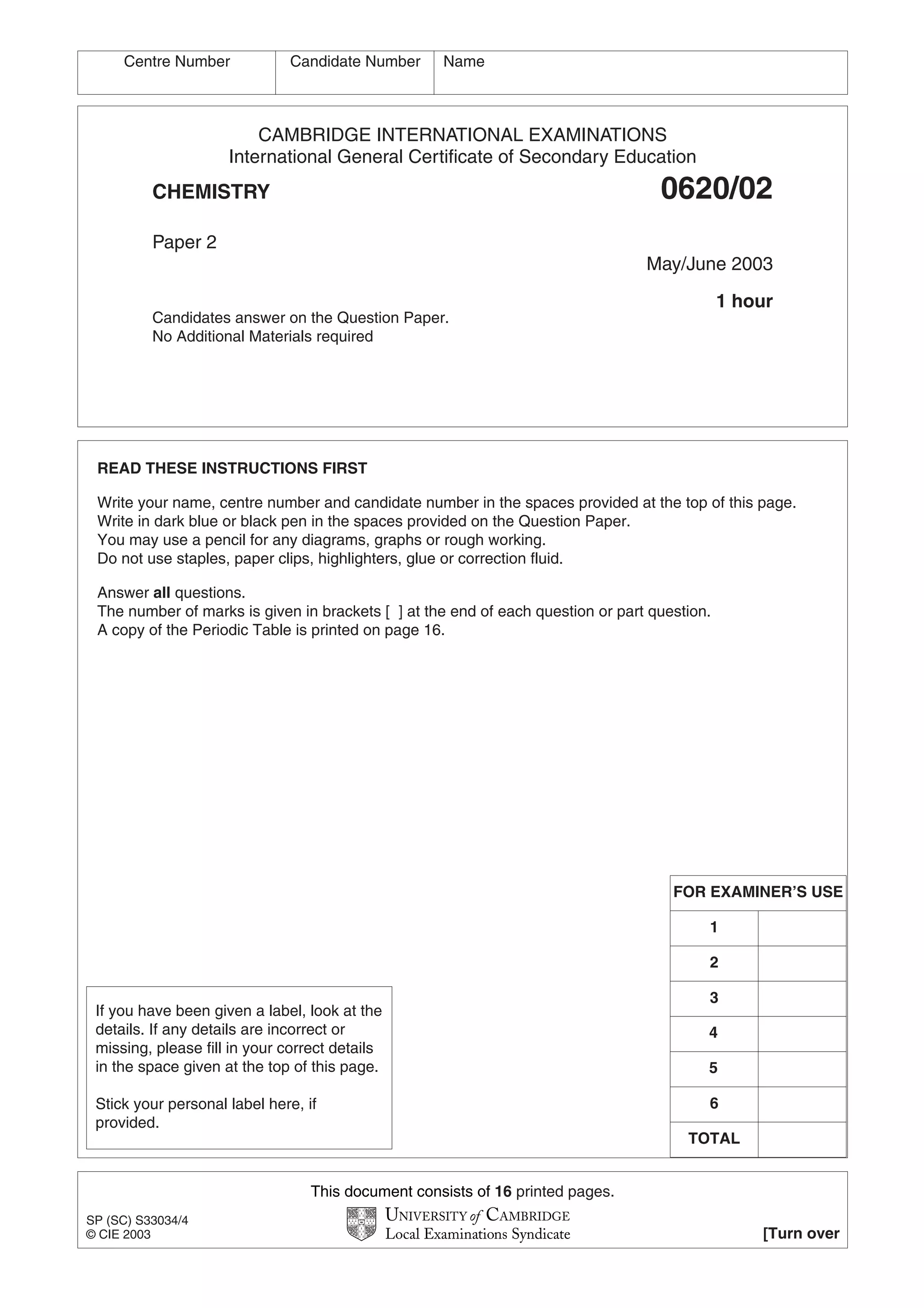 This document consists of a chemistry exam paper with multiple choice and short answer questions testing knowledge of chemistry concepts and principles. It includes questions on the periodic table, chemical reactions, states of matter, chemical bonding, and properties and reactions of various elements and compounds. The paper provides context for summarizing key chemistry ideas assessed on the exam.