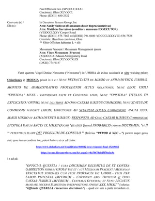 MMXII MISSIO ET ANIMADVERTO IURIBUS; RESPONSIO AD OHIO CAESAR IURIBUS COMMISSIONE