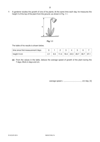 1. The growth of a plant over 7 days, finding the average speed of growth.
