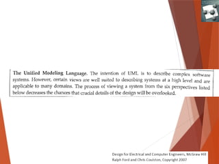 The document focuses on system design behavioral models, outlining their purposes, characteristics, and various types such as flowcharts and entity relationship diagrams. It emphasizes the importance of modeling for system functionality and communication, detailing how models must be abstract, unambiguous, and innovative. Additionally, it discusses the differentiation between various modeling types and their applications in system design, illustrated with examples like vending machines and video browsing systems.