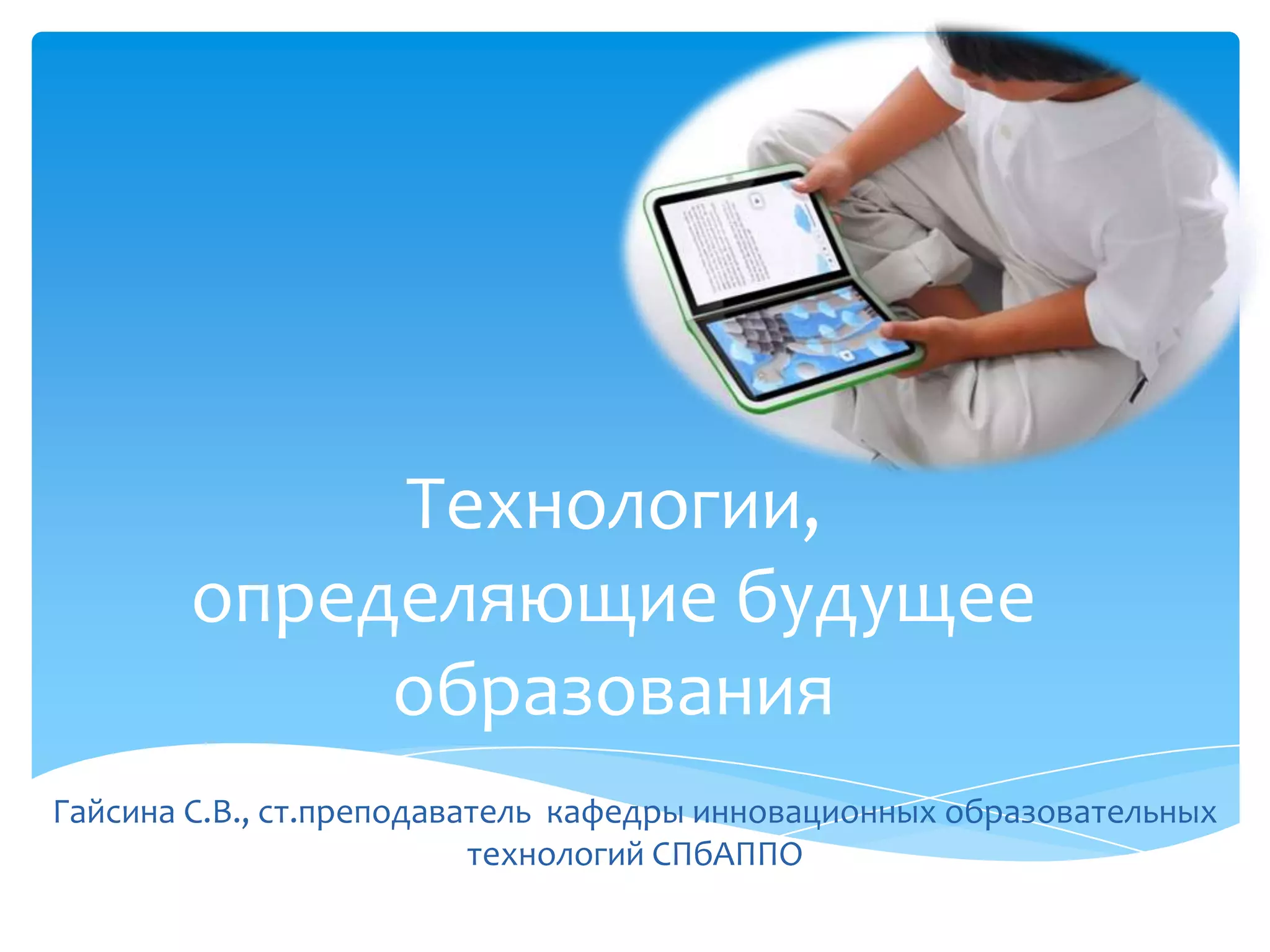 Документ описывает ключевые технологии, определяющие будущее образования, включая мобильные технологии, открытый контент, электронные книги и дополненную реальность. Он рассматривает преимущества этих технологий, такие как доступность, мобильность и гибкость, а также различные инструменты и платформы для совместной работы и электронного обучения. Также упоминаются облачные технологии и ресурсы для создания интерактивного образовательного контента.