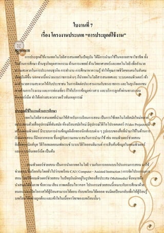 āđāļĢāļ·āđāļāļ āđāļāļĢāļāļāļēāļāļāļĢāļ°āđāļ āļ âāļāļēāļĢāļāļĢāļ°āļĒāļļāļāļāđ āđāļāđ āļāļēāļâ āļāļ§āļēāļĄāļŦāļĄāļēāļĒ āļāļēāļĢāļāļĢāļ°āļĒāļļāļāļāđāđāļāđāļāļēāļāđāļāļāđāļāđāļĨāļĒāļĩāļŠāļēāļĢāļŠāļāđāļāļĻāđāļāļāļąāļāļāļļāļāļ āđāļāđāļĄāļĩāļāļēāļĢāļāļēāļĄāļēāđāļāđāđāļāļŦāļĨāļēāļĒāļŠāļēāļāļēāļ§āļīāļāļēāļāļĩāļ āļāļąāđāļ āļą āđāļāļāđāļēāļāļāļēāļĢāļĻāļķāļāļĐāļē āļāđāļēāļāļāļļāļĢāļāļīāļāļāļļāļāļŠāļēāļŦāļāļĢāļĢāļĄ āļāđāļēāļāļāļēāļĢāđāļāļāļĒāđ āļāđāļēāļāļ§āļīāļāļĒāļēāļĻāļēāļŠāļāļĢāđāđāļĨāļ°āđāļāļāđāļāđāļĨāļĒāļĩ āđāļāļ·āđāļāļāļēāļāļ§āļĒ āļāļ§āļēāļĄāļŠāļ°āļāļ§āļāđāļāļāļēāļĢāļāļĢāļ°āļāļāļāļāļļāļĢāļāļīāļ āļāļēāļĢāļāļēāļāļēāļ āļāļēāļĢāļĻāļķāļāļĐāļēāļŦāļēāļāļ§āļēāļĄāļĢāļđ āđ āļāļēāđāļŦāđāļāļļāļāļ āļēāļāļāļĩāļ§āļāļāļāļāļāļāđāļāļŠāļąāļāļāļĄ āļī āļāļąāļāļāļļāļāļāļāļĩāļāđ āļķāļ āļāļāļāļāļēāļāļāļĩāđāļŦāļāđāļ§āļĒāļāļēāļāļĢāļēāļāļāļēāļĢāļāđāļēāļāđ āļāđāļāļēāđāļāļāđāļāđāļĨāļĒāļĩāļŠāļēāļĢāļŠāļāđāļāļĻāđāļĨāļ° āļĢāļ°āļāļāļāļāļĄāļāļīāļ§āđāļāļāļĢāđ āđāļāđāļē āļą āļą āļĄāļēāļāļēāļāļ§āļĒāļāļ§āļēāļĄāļŠāļ°āļāļ§āļāđāļŦāđāļāļāļāļĢāļ°āļāļēāļāļ āđāļāļāļēāļĢāļāļīāļāļāđāļāļāļĢāļ°āļŠāļēāļāļāļēāļāļāļąāļāļāļēāļāļĢāļēāļāļāļēāļĢ āđāļĨāļ°āđāļāļāļļāļĢāļāļīāļāđāļāļāļāļ āļāļēāļāļāđāļēāļāļāļēāļĢāđāļĢāļāđāļĢāļĄ āđāļĨāļ°āļāļēāļĢāļāđāļāļāđāļāļĩāđāļĒāļ§ āļāđāđāļŦāđāļāļĢāļī āļāļēāļĢāļāđāļāļĄāļđāļĨāļāđāļēāļ§āļŠāļēāļĢ āđāļĨāļ°āļāļĢāļī āļāļēāļĢāļĨāļđāļāļāđāļēāļāđāļēāļāļāļēāļāļĢāļ°āļāļ āļāļīāļāđāļāļāļĢāđāđāļāđāļ āļāļēāđāļāđāļāļĒāđāļēāļāļŠāļ°āļāļ§āļāļĢāļ§āļāđāļĢāđāļ§āļāļąāļāđāļŦāļāļļāļāļēāļĢāļāđ āļāļĢāļ°āļĒāļļāļāļāđ āđāļāđ āđāļāļāļēāļāļāđ āļēāļāļāļēāļĢāļĻāļķāļāļĐāļē āđāļāļāđāļāđāļĨāļĒāļĩāļŠāļēāļĢāļŠāļāđāļāļĻāļāļĩāđāļāļēāļĄāļēāđāļāđāļŠāļēāļŦāļĢāļąāļāļāļēāļĢāđāļĢāļĩ āļĒāļāļāļēāļĢāļŠāļāļ āđāļāđ āļāļāļēāļĢāđāļāđāđāļāļāđāļāđāļĨāļĒāļĩāļŠāļĄāļąāļĒāđāļŦāļĄāđāļŦāļĨāļēāļĒ āļāļĒāđāļēāļ āļŠāļāļāļāđāļ§āļĒāļŠāļ·āđ āļāļāļļāļāļāļĢāļāđāļāļĩāđāļāļāļŠāļĄāļąāļĒ āļŦāđāļāļāđāļĢāļĩ āļĒāļāļŠāļĄāļąāļĒāđāļŦāļĄāđ āļĄāļĩāļāļļāļāļāļĢāļāđāļ§āļāļĩāđāļāđāļāļĢāđāļāļāđāļāļāļĢāđ (Video Projector)āļĄāļĩ āļą āļī āđāļāļĢāļ·āđ āļāļāļāļāļĄāļāļīāļ§āđāļāļāļĢāđ āļĄāļĩāļĢāļ°āļāļāļāļēāļĢāļāđāļēāļāļāđāļāļĄāļđāļĨāļāļīāđāļĨāđāļāļāļĢāļāļāļīāļāļŠāđāđāļāļāļāđāļēāļ āđ āļĢāļđ āļāđāļāļāļāļāļāļŠāļ·āđ āļāļāļĩāđāļāļēāļĄāļēāđāļāđāđāļāļāđāļēāļāļāļēāļĢ āđāļĢāļĩ āļĒāļāļāļēāļĢāļŠāļāļ āļāđāļĄāļĩāļŦāļĨāļēāļāļŦāļĨāļēāļĒ āļāļķāđāļāļāļĒāļđāļāļāļāļ§āļēāļĄāđāļŦāļĄāļēāļ°āļŠāļĄāđāļāļāļēāļĢāļāļēāļĄāļēāđāļāđ āđāļāđāļ āļāļāļĄāļāļīāļ§āđāļāļāļĢāđāļāđāļ§āļĒāļŠāļāļ āđ āļą āļāļīāđāļĨāđāļāļāļĢāļāļāļīāļāļŠāđāļāļļāļ āļ§āļīāļāļĩāđāļāđāļāđāļĨāļāļāļāđāļāļāđāļĢāļāļāđ āļĢāļ°āļāļāļ§āļīāļāļĩāđāļāļāļāļāļāļĩāļĄāļēāļāļāđ āļāļēāļĢāļŠāļ· āļāļāđāļāļāđāļāļĄāļđāļĨāđāļāļāļāļĄāļāļīāļ§āđāļāļāļĢāđ āđāļĨāļ°āļĢāļ°āļāļāļāļīāļāđāļāļāļĢāđāđāļāđāļ āđāļāđ āļāļāđāļ - āļāļāļĄāļāļīāļ§āđāļāļāļĢāđ āļāđāļ§āļĒāļŠāļāļ āđāļāđ āļāļāļēāļĢāļāļēāđāļāļēāđāļāļāđāļāđāļĨāļĒāļĩ āļĢāļ§āļĄāļāļąāļāļāļēāļĢāļāļāļāđāļāļāđāļāļĢāđāļāļĢāļĄāļāļēāļĢāļŠāļāļ āļĄāļēāđāļāđ āļāđāļ§āļĒāļŠāļāļ āļāļķāđāļāđāļĢāļĩ āļĒāļāļāļąāļāđāļāļĒāļāļąāļ§āđāļāļ§āđāļēāļāļāđāļĢāļĩ āļĒāļ CAI ( Computer - Assisted Instruction ) āļāļēāļĢāļāļąāļāđāļāļĢāđāļāļĢāļĄāļāļēāļĢ āđ āļŠāļāļ āđāļāļĒāđāļāđāļāļāļĄāļāļīāļ§āđāļāļāļĢāđāļāđāļ§āļĒāļŠāļāļ āđāļāļāļą