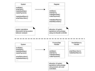 Документ описывает принципы архитектуры информационных систем, включая концепцию responsibility-driven design и распределение обязанностей через шаблоны GRASP. Рассматриваются важнейшие шаблоны, такие как creator, information expert, low coupling, controller, и high cohesion, а также основные принципы SOLID проектирования. В качестве дополнительных рекомендаций представлены методы реализации каждого принципа в контексте проектирования программных объектов.