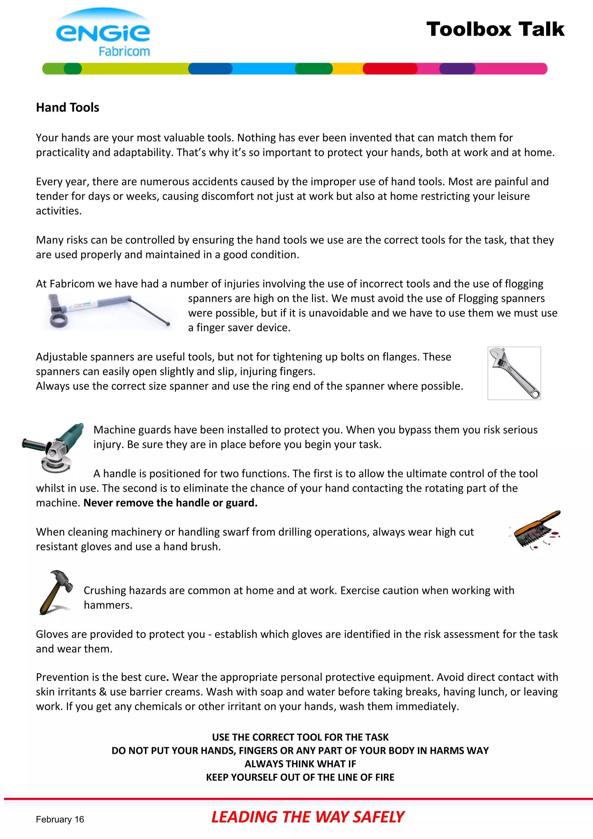 The document emphasizes the importance of hand safety when using tools, noting that hand injuries from improper use are common and often serious. It advises using the correct tools for tasks, maintaining them properly, and following safety measures such as wearing protective gloves and avoiding bypassing machine guards. Ultimately, the key message is to prevent injuries by being cautious and using appropriate personal protective equipment.