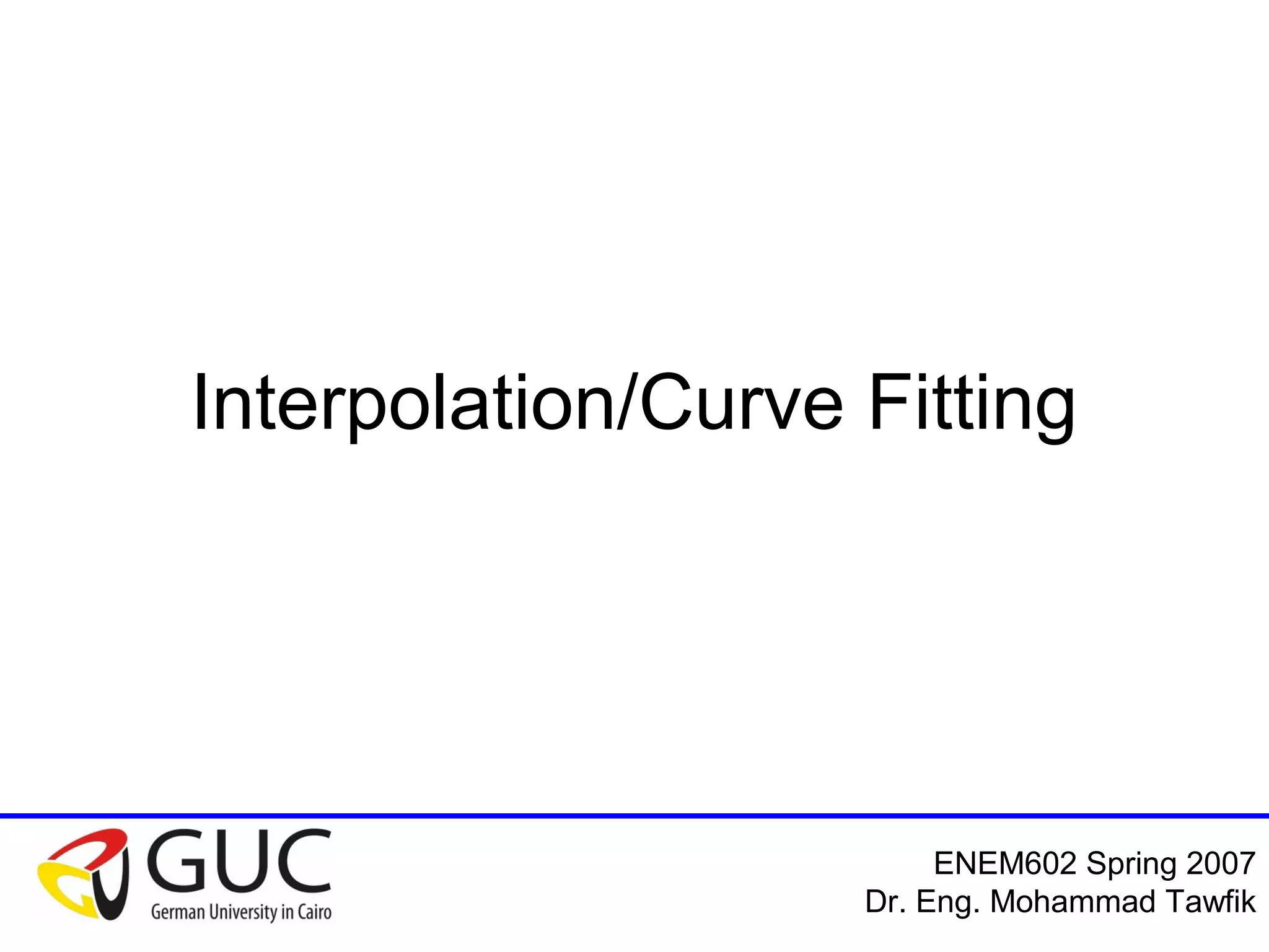 This document outlines a course on interpolation and curve fitting taught by Dr. Eng. Mohammad Tawfik. It discusses the objectives of understanding the differences between regression and interpolation and how to fit polynomials to data. It provides examples of using linear, polynomial and Newton's interpolation methods to find equations that fit sets of measured data points, including solving systems of equations and using tables. The document emphasizes that Newton's method has the advantage of not requiring matrix inversion.