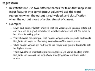 This document provides an overview of logistic regression using stochastic gradient descent. It explains that logistic regression can be used for classification problems where the output is discrete. The key aspects covered include: