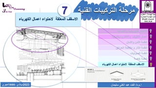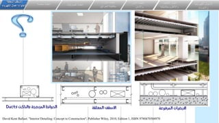 يتناول المستند مواضيع متعلقة بالهندسة المعمارية، بما في ذلك أنظمة الإضاءة والتكييف والأنظمة الإلكترونية والأمنية. يقدم معلومات حول تنسيق الأسقف المعلقة، ومواد البناء المختلفة، ويتطرق أيضًا لمواصفات وتقنيات تركيب هذه الأنظمة. يعتبر دليلًا مهمًا للطلاب في كلية الهندسة المعمارية لفهم جوانب متعددة من التصميم والتنفيذ.