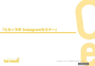 All Rights Reserved. 自己紹介 34 confidential まつしげしゅうへい 松重 秀平 2007年〜2015年 中堅WEBコンサルティング会社にてWEBコンサルティング営業に従事、 様々な業界の経営者1000名以上と商談。ビジネスに関する課題解決を行 う。 現在 テテマーチ株式会社の執行役員として、ソーシャルメディア事業部を立 ち上げ。ソーシャルメディアの中でもInstagramに特化しサービスを展 開。「インスタアンテナ」「CAMPiN」「P-conne」「Picruise」を立ち 上げる。 過去の登壇実績