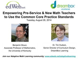 The document outlines the importance of empowering pre-service and new math teachers to effectively use the Common Core State Standards for Mathematics (CCSSM), emphasizing the need for robust mathematical practices in their training. It discusses the historical development of these standards and suggests incorporating reflective writing and low-threshold high-ceiling problems into teacher education to enhance their understanding of mathematical practices. The role of ongoing support for teachers and the connection between content and pedagogy are highlighted as crucial for effective mathematics instruction.