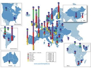 The document discusses European living labs and open innovation ecosystems. It notes that global challenges require diverse knowledge and mass collaboration. Living labs are open, user-driven ecosystems that engage stakeholders to stimulate collaboration and co-create solutions. The European Network of Living Labs (ENoLL) connects over 300 living labs across Europe and beyond to support open innovation.