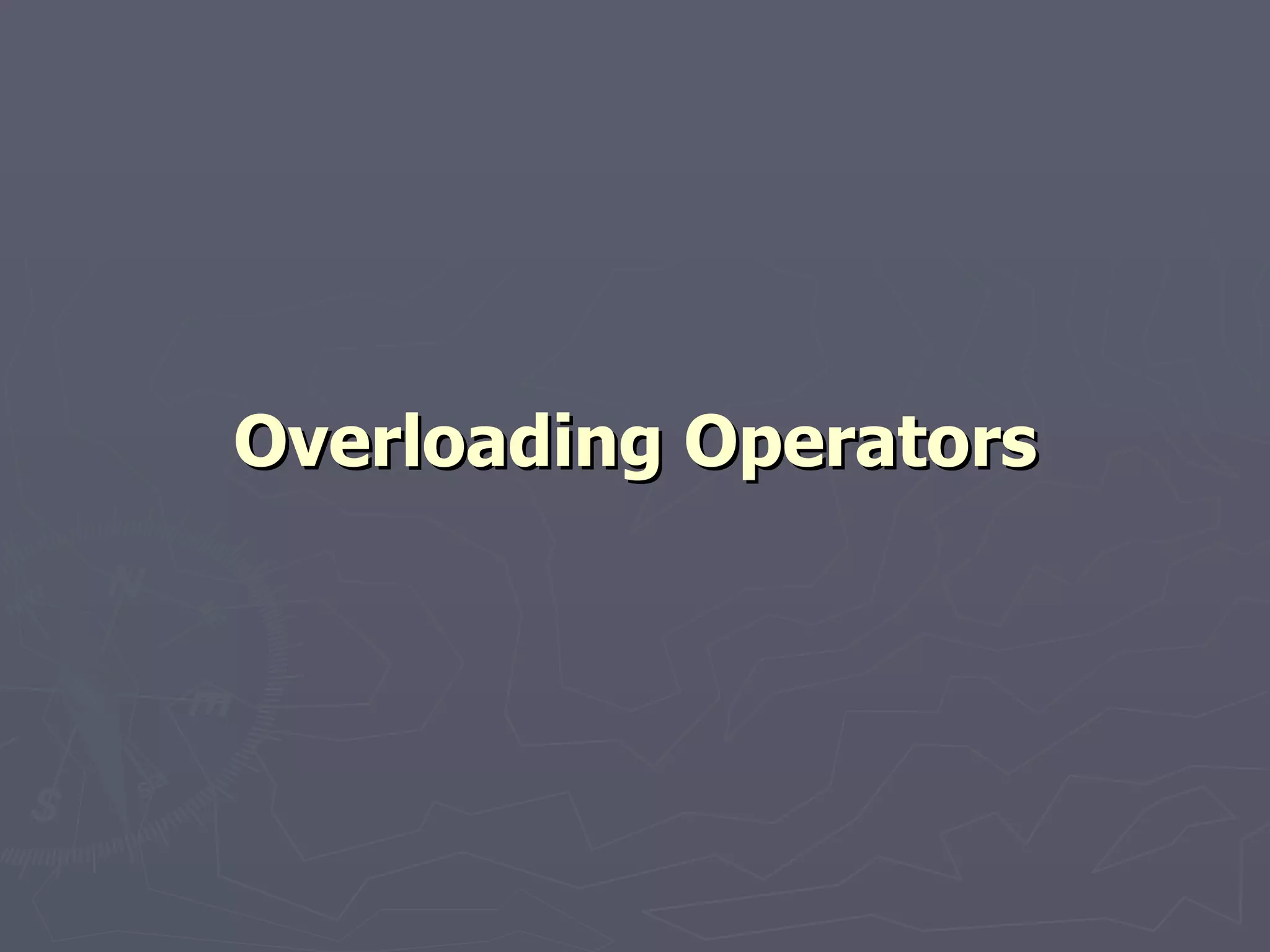 Operator overloading allows operators like + and << to be used with user-defined types like classes. It is done by defining corresponding operator functions like operator+() and operator<<(). This allows objects to be used with operators in a natural way while providing custom behavior for that type. The rules for overloading include maintaining precedence and associativity of operators. Common operators like +, -, *, /, <<, >>, ==, =, [] and () can be overloaded to extend the behavior of classes.