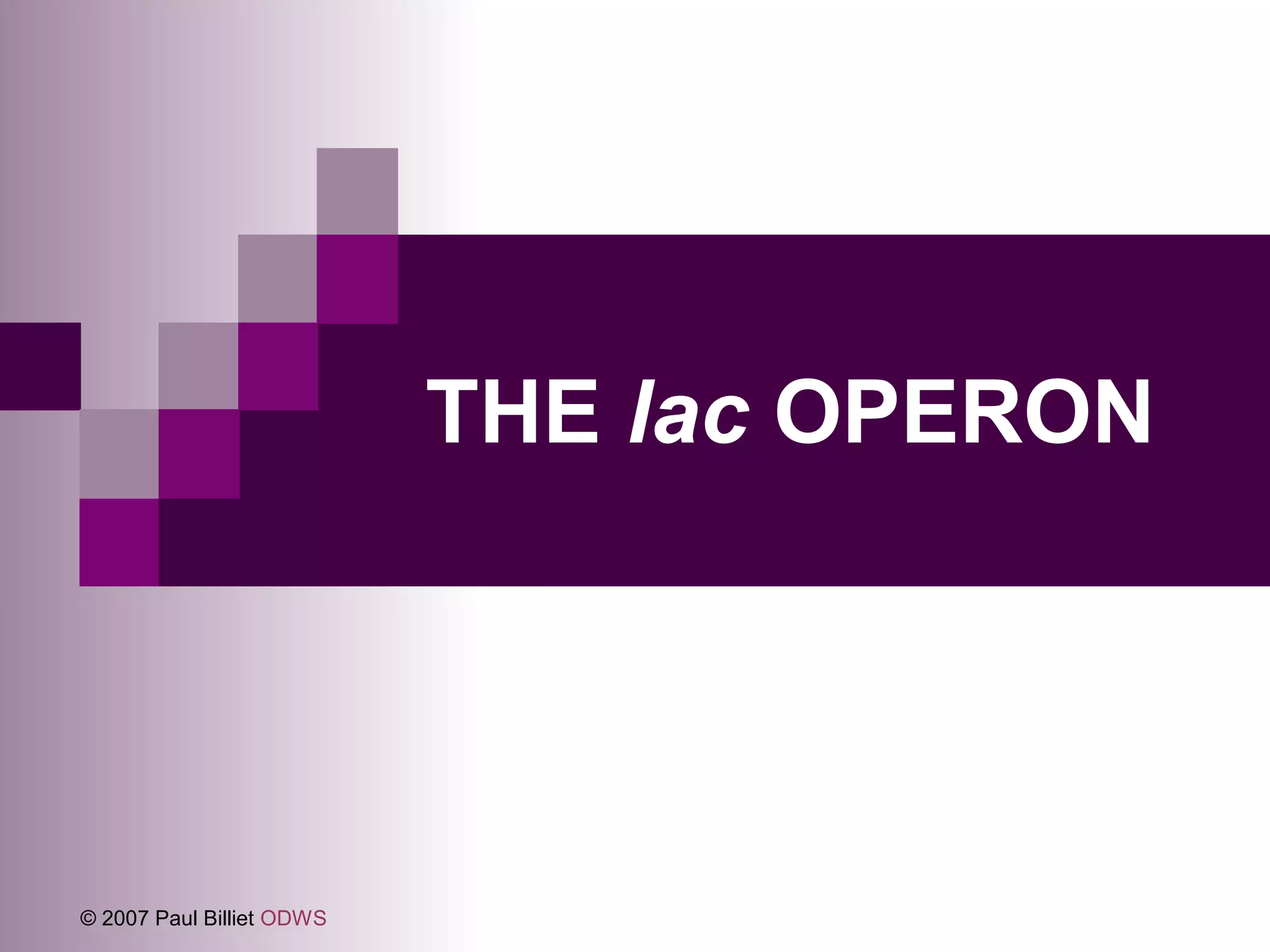 The lac operon controls genes involved in lactose metabolism in E. coli bacteria. It consists of three genes that are transcribed together. When glucose is present, a repressor protein binds to the operator site of the lac operon and blocks transcription. When lactose is present, an allosteric change in the repressor protein causes it to detach from the operator site, allowing RNA polymerase to bind and transcribe the genes. However, in the presence of both glucose and lactose, transcription does not occur as RNA polymerase is unstable and falls off the promoter site readily. Only when glucose is absent and lactose is present, an activator protein binds and stabilizes RNA polymerase, leading to efficient transcription of the lac oper