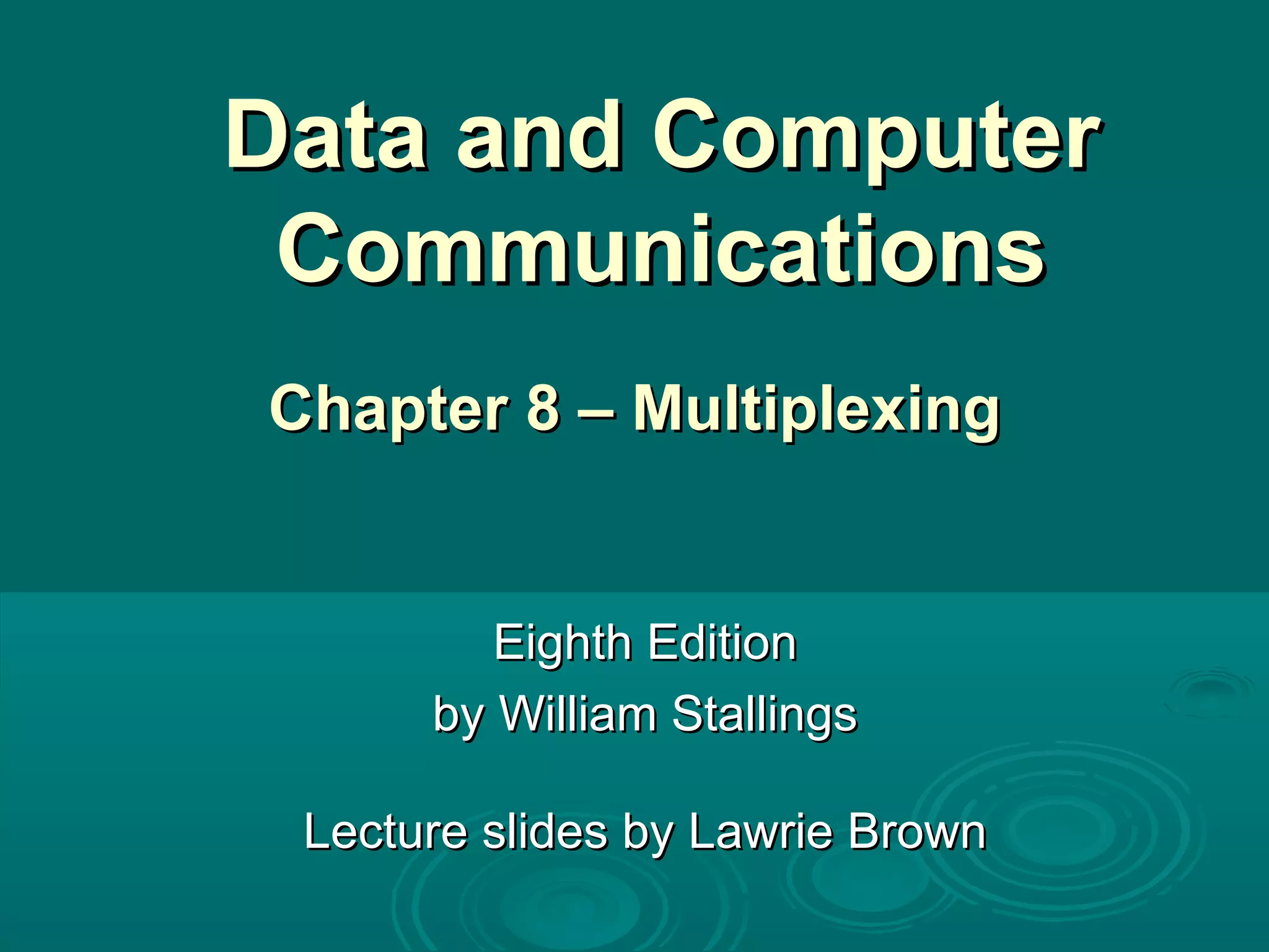 This document discusses different multiplexing techniques used to transmit multiple channels over a single communication link, including frequency division multiplexing (FDM), time division multiplexing (TDM), statistical TDM, asynchronous digital subscriber line (ADSL), and various digital subscriber line (DSL) technologies. It provides examples of how FDM, TDM, and statistical TDM are used in analog carrier systems, digital carrier systems, synchronous optical network (SONET), and cable modem networks. It also describes how ADSL and discrete multitone (DMT) modulate signals across different frequencies to provide broadband internet over telephone lines.