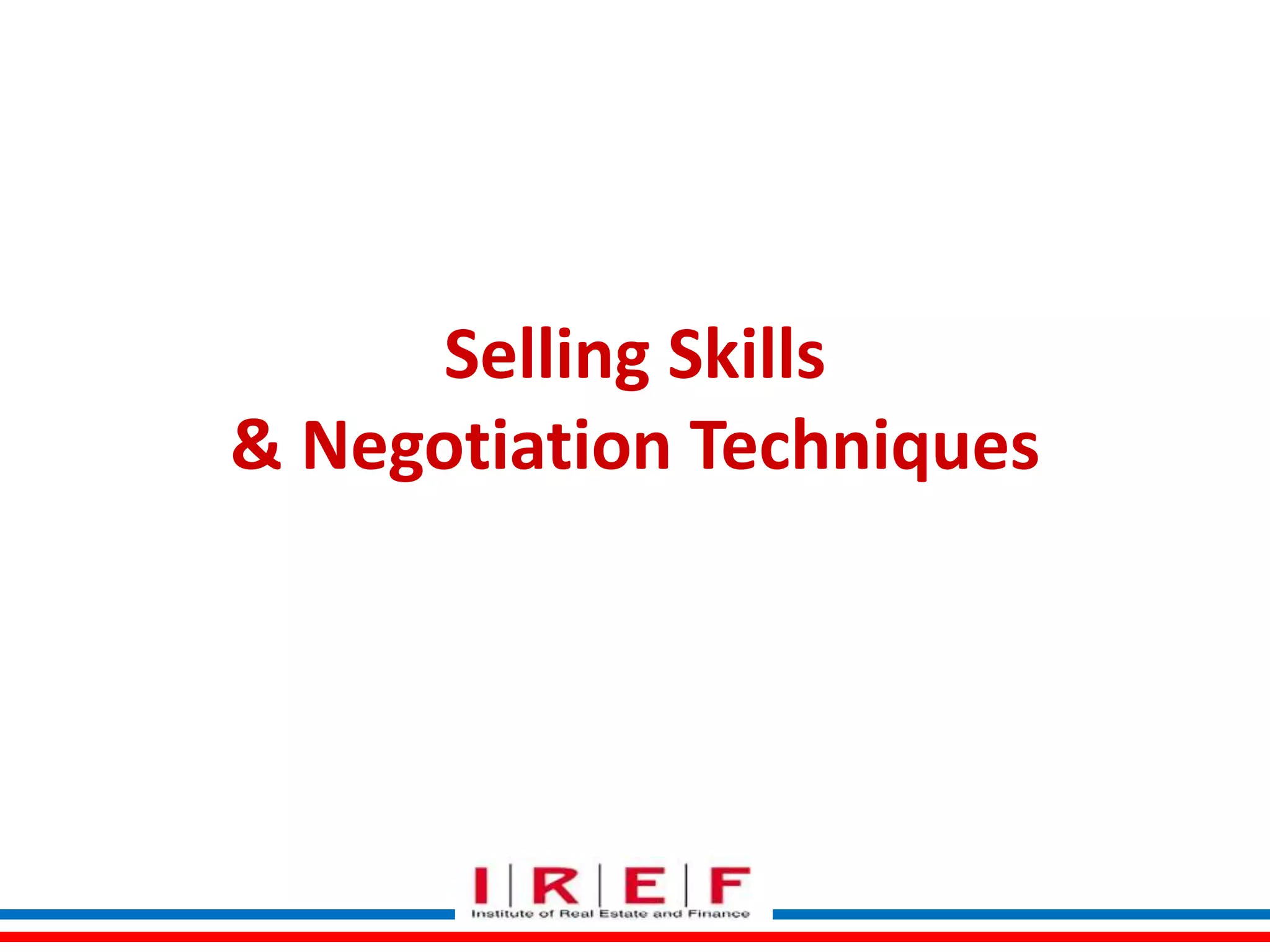 This document discusses skills for successful selling and negotiation. It outlines 13 building blocks for achieving selling success, including 8 basic selling skills like researching prospects and asking for commitment. Different types of sales professionals are described. SPIN selling is introduced as a technique using situation, problem, implication, and need-payoff questions. Negotiation techniques are also discussed, with the top 10 techniques including knowing your wants/opposition, structuring agreements early, and preparing options rather than ultimatums. Assignments are given applying these skills and techniques.
