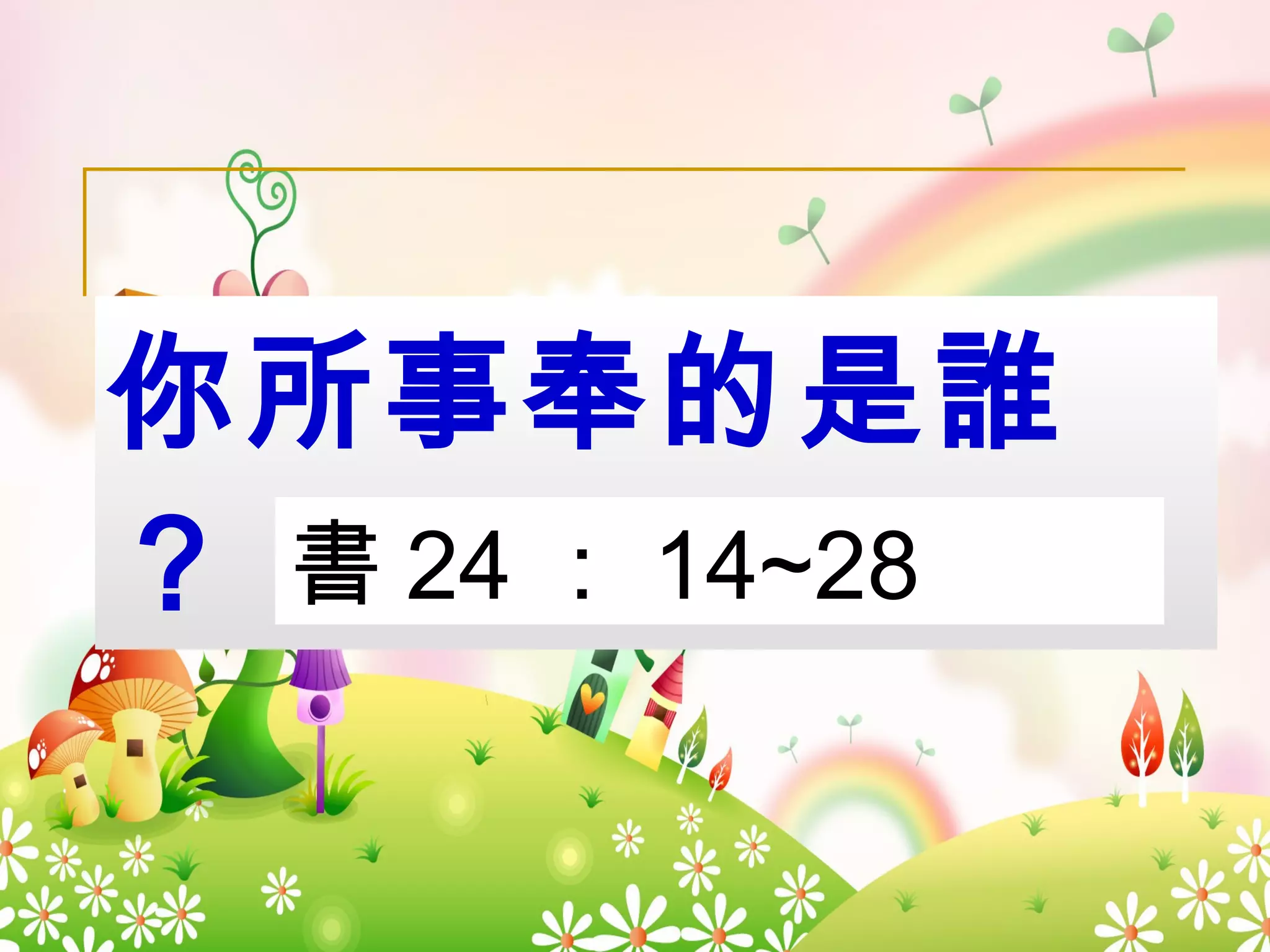 書 24 : 15 若是你們以事奉耶和華為不好,今日就可以選擇所要事奉的…