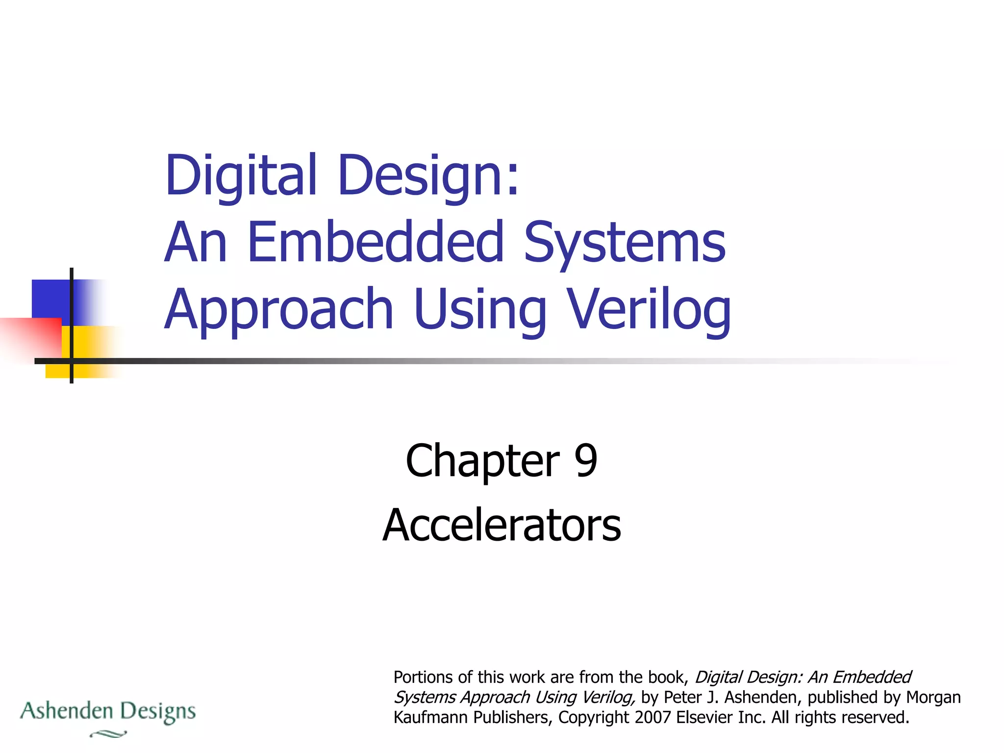 The document discusses accelerators for improving performance in digital systems. It describes how accelerators can perform operations in parallel to speed up algorithms. Key points include: