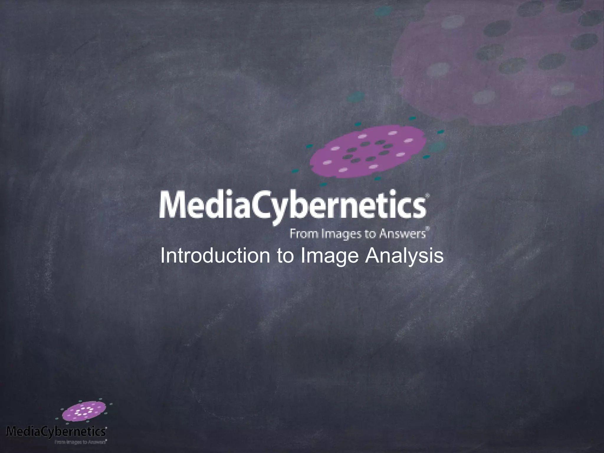 This document provides an introduction to key concepts in image analysis, including what constitutes an image, how resolution and sampling rates impact image quality, and factors involving bit depth, color, and common tools used for image investigation. It discusses how optical systems project light to a focal plane where intensity measurements are stored numerically and rendered as images. It also covers how resolution is defined and limited, optimization of resolution, the relationship between bit depth and detectable intensity variations, and tradeoffs of different color measurement techniques.