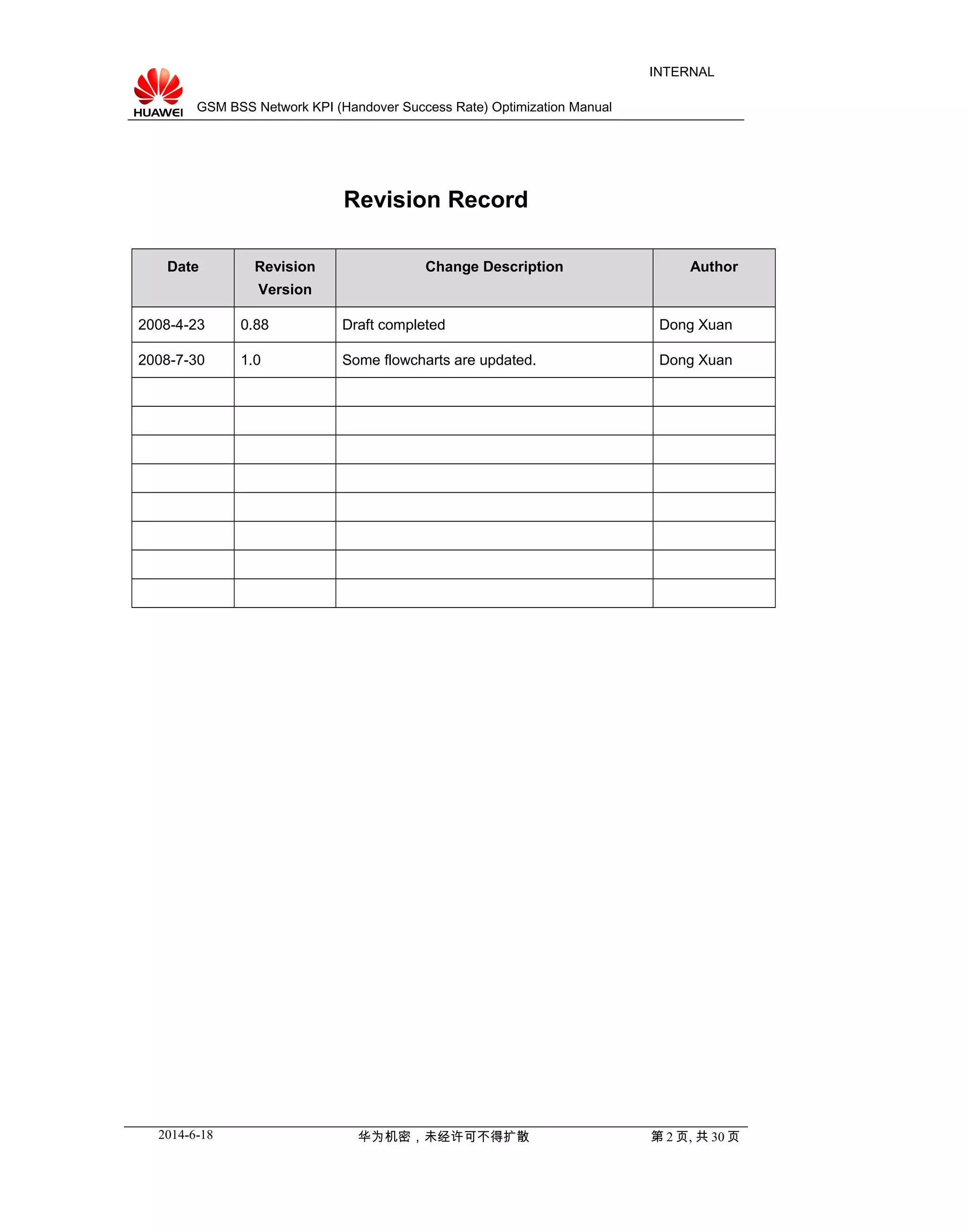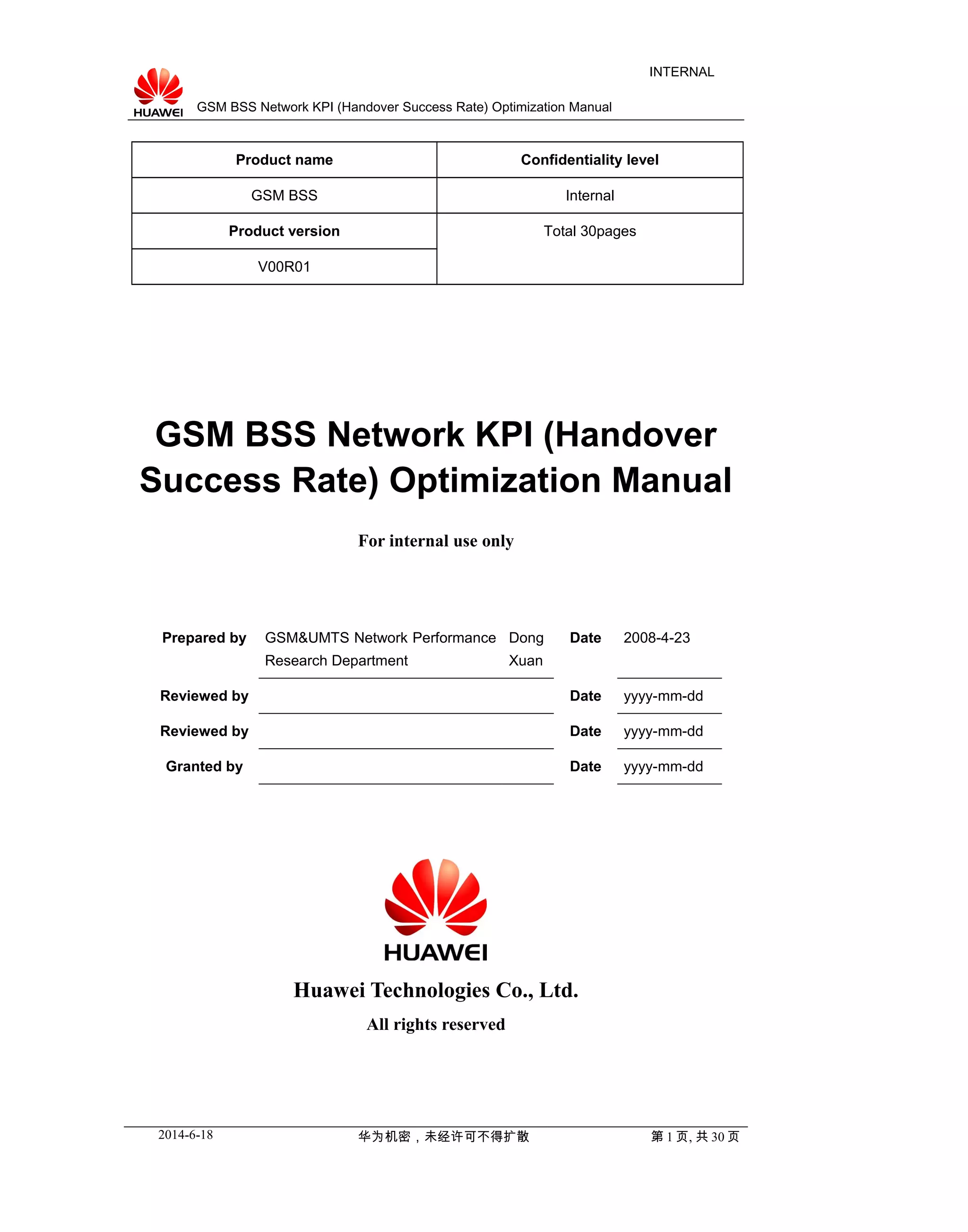 This document provides a method for optimizing the Handover Success Rate (HOSR) as a key performance indicator for GSM networks. It analyzes factors that affect HOSR on the BSS side and provides troubleshooting steps to quickly locate low HOSR issues. Optimization measures are proposed to improve HOSR and meet requirements for solving handover problems. The document is intended to help optimize network performance and monitor quality.