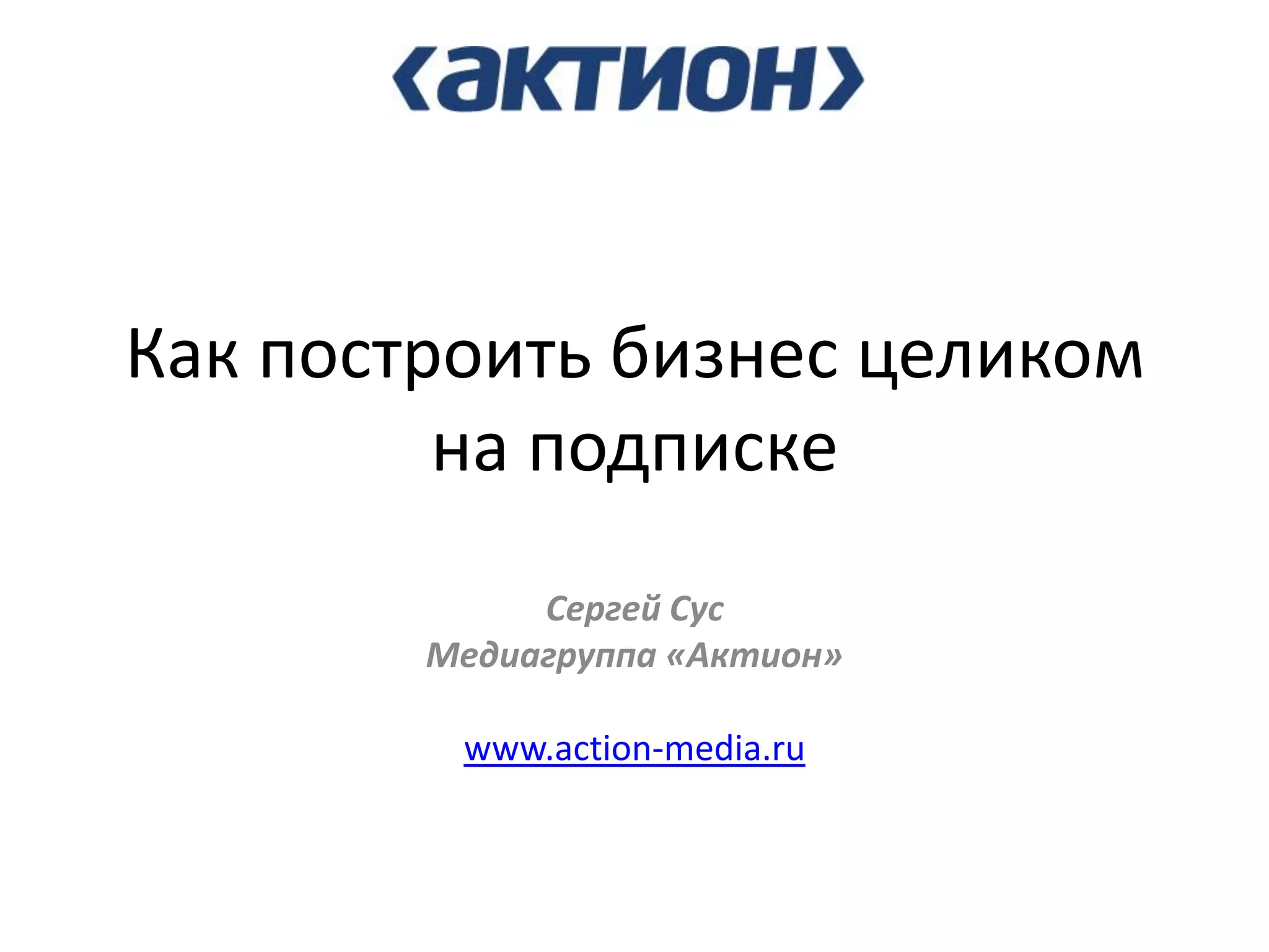 Документ описывает успешную модель подписного бизнеса медиагруппы «Актион», которая имеет 350 000 активных подписок, из которых более 40% являются цифровыми. Основное внимание уделяется лидогенерации, удержанию подписчиков и особенностям работы с клиентами, включая сегментацию и использование различных маркетинговых каналов. Подчеркиваются важность долгосрочных подписок и стратегии, направленные на поддержание высокой конверсии и взаимной лояльности клиентов.