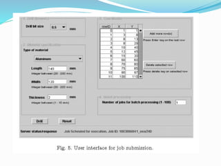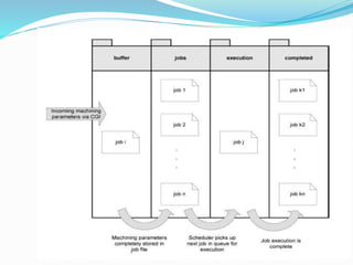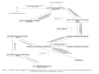 This document discusses web based manufacturing. It introduces web based manufacturing and explains some of its key benefits, including capturing a global audience, handling data issues, coordinating multi-user access, and reducing susceptibility to communication delays. It then describes the framework of web based manufacturing systems, including the modular architecture and processes like job submission, scheduling, storage, execution, monitoring, and management. Finally, it discusses some methodologies for implementing web based manufacturing systems, including using ERP systems, a web machining methodology, and the PROMME methodology.