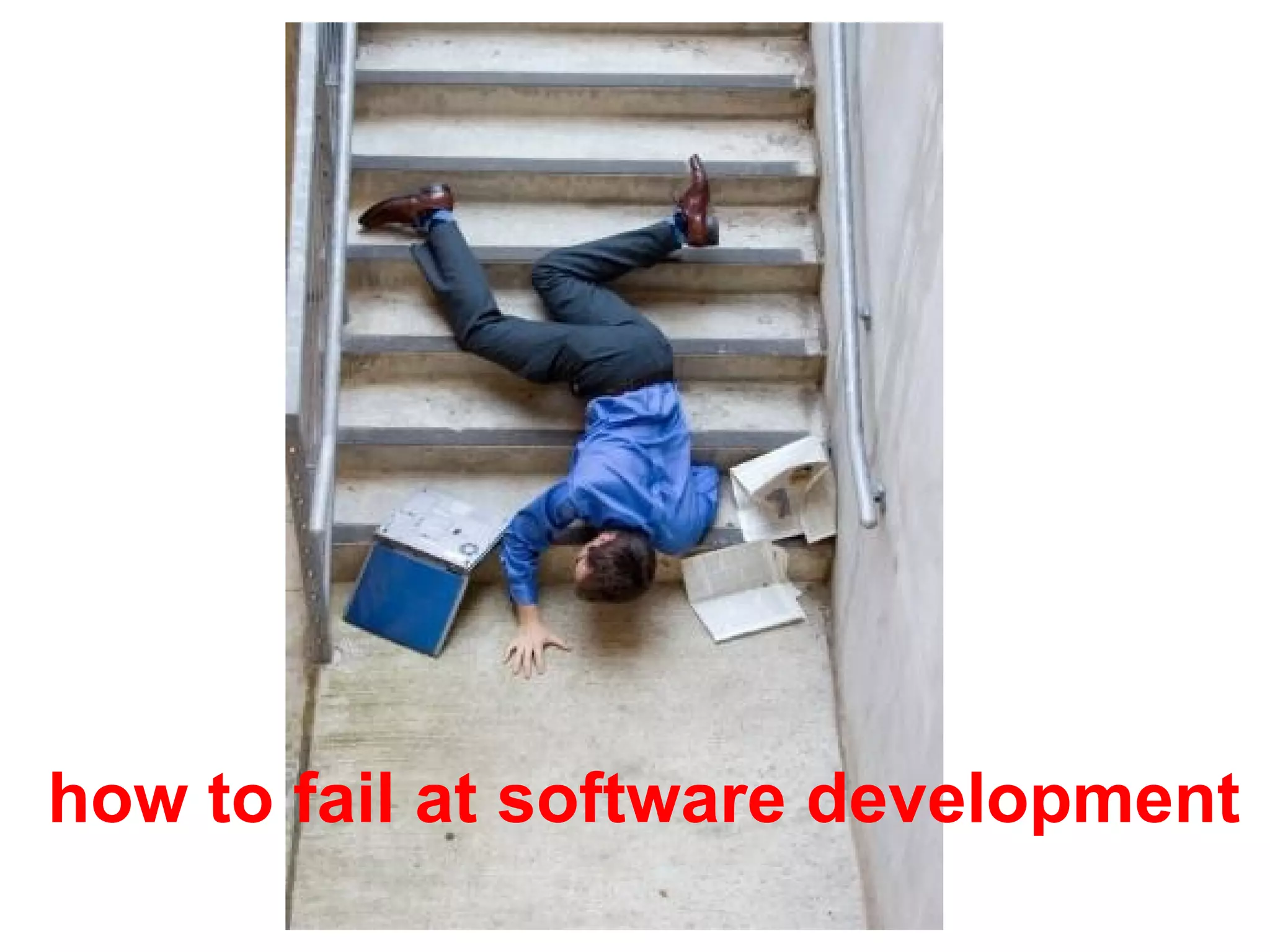 The 1995 Standish Report highlights common failures in software development, noting that over 30% of projects never complete and costs can double, leading to significant financial losses. Key recommendations for avoiding failures include acknowledging mistakes, learning from them, and adapting approaches, such as prioritizing smaller, more focused projects and maintaining flexibility in scope and budget. The document emphasizes the importance of proper management and collaboration, while also urging individuals to reflect on their own experiences and learn from them.