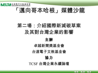 #35 當然,企業是不能坐以待斃的。在今年五月二十六日,有一場關於企業的氣候高峰會 WBSCC, 呼喻全球在 2020 年前,要比 BAU 減 170 億噸。