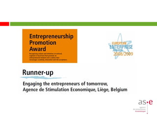 - The document summarizes an entrepreneurship program in Wallonia, Belgium called "Nothing But Aces" run by the Economic Development Agency (AS-E) between 2007-2009.
