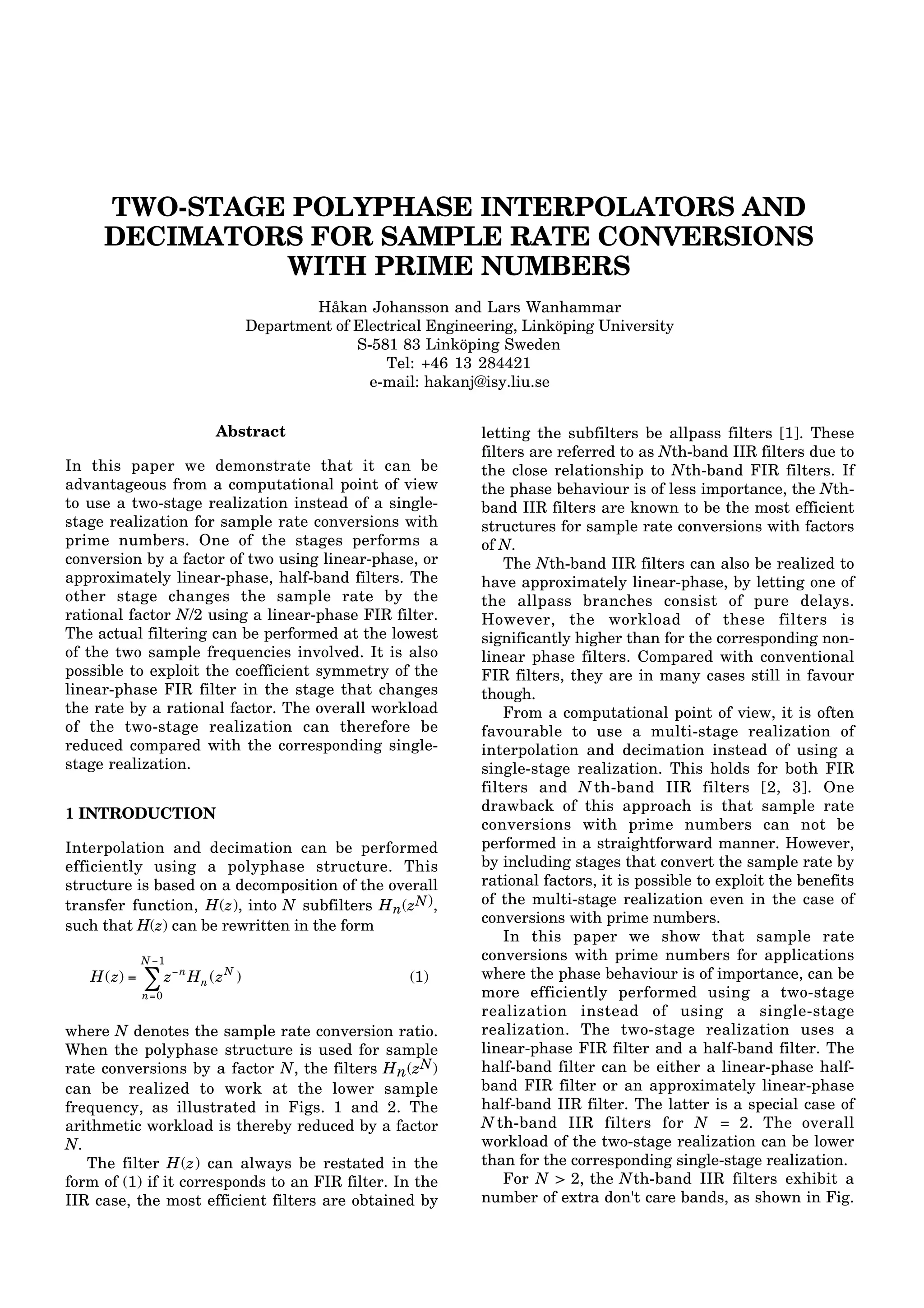 This paper presents a two-stage realization method for sample rate conversions with prime numbers, showing computational advantages over single-stage implementations. The two stages involve using a half-band filter for an initial conversion and a linear-phase FIR filter for the subsequent rational factor adjustment. Comparisons reveal that the two-stage approach reduces overall workload and eliminates issues related to extra don't care bands found in nth-band IIR filters.