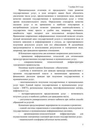 7 ноября 2013 года представлен проект концепции развития механизмов предоставления государственных и муниципальных услуг в электронном виде. Концепция направлена на обеспечение качества услуг для граждан и включает в себя оптимизацию процессов, улучшение доступности через единый портал и новую технологическую инфраструктуру. Министерство связи и массовых коммуникаций Российской Федерации разработает план мероприятий по реализации концепции в дальнейшем.