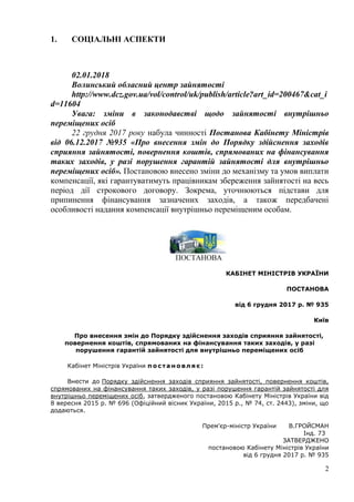 від 06.12.2017 №935 «Про внесення змін до Порядку здійснення заходів