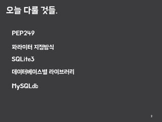 링크 : http://legacy.python.org/dev/peps/pep-0249/
