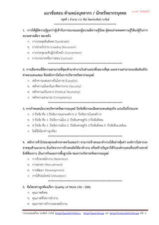 แนวข้อสอบตำแหน่งบุคลากร นักทรัพยากรบุคคล (ชุดที่ 1 จำนวน 111 ข้อ) แนวข้อสอบเก่าน่ะครับ ติดตามเพิ่มเติมได้ที่ http://valrom.igetweb.com หรือ http://group.wunjun.com/valrom2012/11251