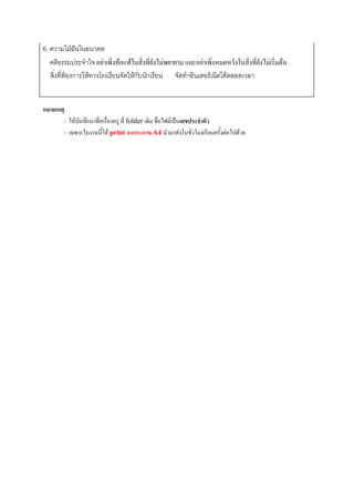 คติธรรมประจาใจ อย่าเพิ่งท้อแท้ในสิ่งที่ยังไม่พยายาม และอย่าเพิ่งหมดหวังในสิ่งที่ยังไม่เริ่มต้น สิ่งที่ต้องการให้ทางโรงเรียนจัดให้กับนักเรียน จัดทาอินเตอร์เน็ตได้ตลอดเวลา หมายเหตุ - ให้บันทึกมาที่เครื่องครู ที่ folder เดิม ชื่อไฟล์เป็นเลขประจาตัว - เฉพาะใบงานนี้ให้ print ลงกระดาษ A4 นามาส่งในชั่วโมงเรียนครั้งต่อไปด้วย