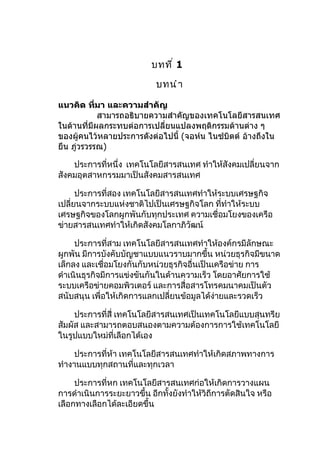 บทที่1บทนำแนวคิดที่นำมาและความสำคัญสามารถอธิบายความสำคัญของเทคโนโลยีสารสนเทศใ... DOC