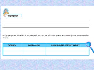 παρατθριςουμε ότι το φωσ κα διαςκορπιςτεί ςε πολλζσ κατευκφνςεισ.