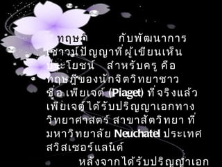 ชื ่ อ เพี ย เจต์ (Piaget) ที ่ จ ริ ง แล้ ว