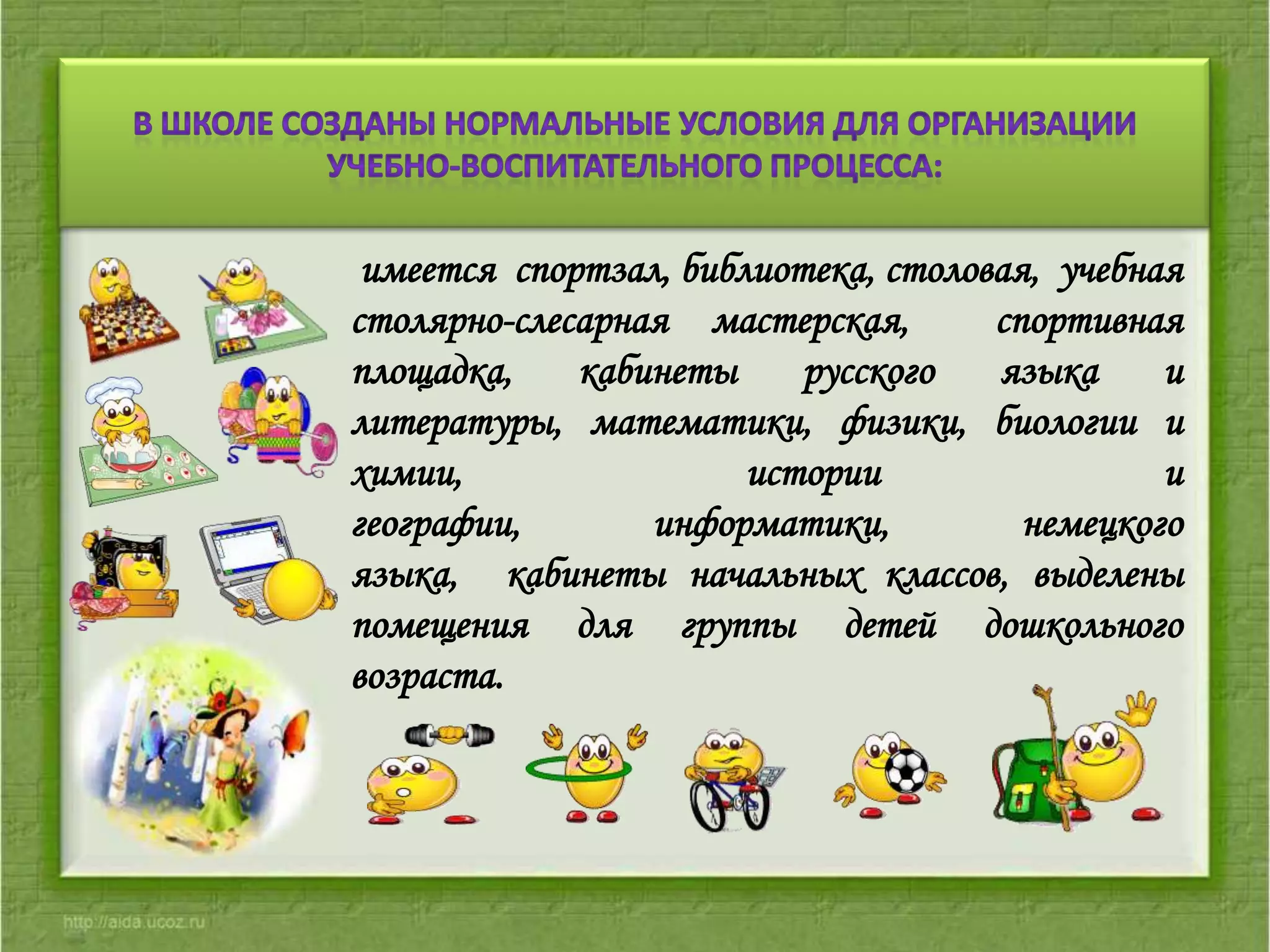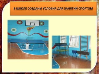 Документ описывает инфраструктуру школы, включая наличие спортивных и учебных помещений, а также закупки учебных материалов и мебели. В 2009-2012 годах были выделены значительные средства на обновление образовательных ресурсов и оборудования, а также на улучшение условий питания и водоснабжения. Учащиеся активно участвуют в спортивных мероприятиях и достигают высоких результатов в различных соревнованиях.