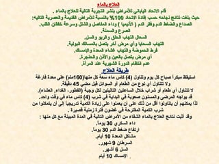 تستعرض الوثيقة فوائد العلاج بالماء ومساهمته في الشفاء من العديد من الأمراض بما في ذلك السكري وضغط الدم والربو. كما تشير إلى أهمية اتباع نظام غذائي متوسطي وزيت الزيتون في تقليل الكولسترول وتعزيز صحة القلب. بالإضافة إلى التطرق لفوائد الحلبة واللوز وأثرهما العلاجي، مع ذكر استعمالات عدة لمكونات طبيعية مثل عرقسوس والبصل في مختلف الأمراض.