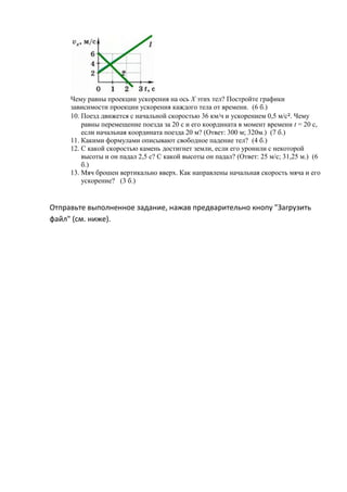 Документ представляет собой тренировочный вариант контрольной работы по теме "кинематика", предназначенный для самостоятельной проверки знаний студентов. Включает разнообразные задания разного уровня сложности с указанием баллов за каждую задачу и оцениванием по набранным баллам. Студенты могут отправлять выполненные задания и получать рецензии в ответ.