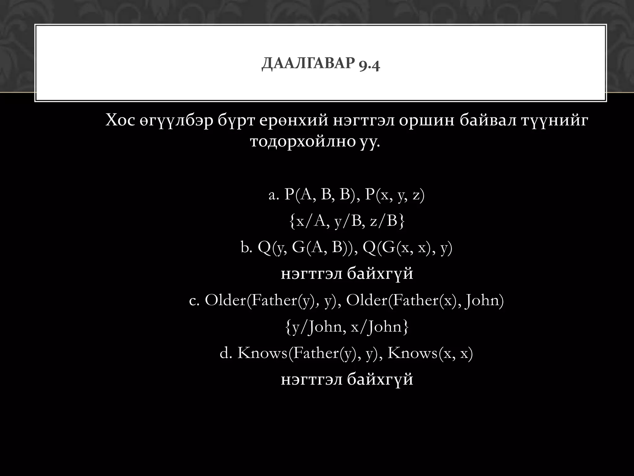 Дээрх хоёр логик илэрхийлэл харшилна. Иймээс дараах асуудал