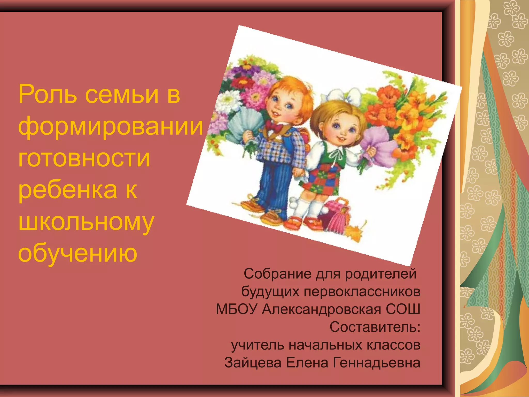 Документ обсуждает роль семьи в подготовке детей к школе, подчеркивая важность взаимодействия родителей с детьми в формировании их готовности. Указывается на необходимость соблюдения семейных традиций и индивидуального подхода к обучению, а также на развитие познавательной мотивации у ребенка. Программа 'Перспектива' представлена как средство для гармоничного развития личности и приобретения базовых навыков чтения и письма.